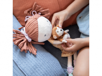 Nádherná bábika s menom Sophia vo veľkosti M (35 cm) od Little Dutch, ktorá očarí nie len deti, ale aj dospelých. Je štýlovo oblečená a drží malú opičku, ktorá je upevnená k nej so suchým zipsom. Jednoducho nemôže chýbať v detskej izby. Je vyrobená z mäkkých materiálov a dodávaná v krásnej krabičke so šnúrkou. Táto krásna bábika sa hravo stane najlepším spoločníkom vášho dievčatka.